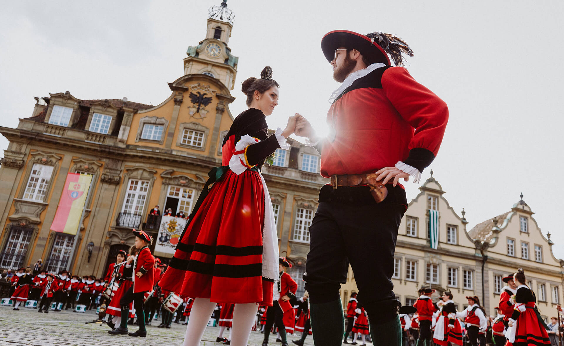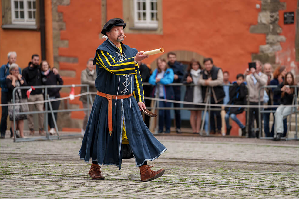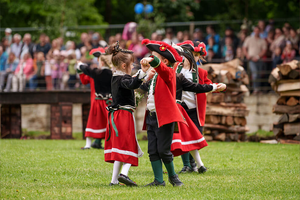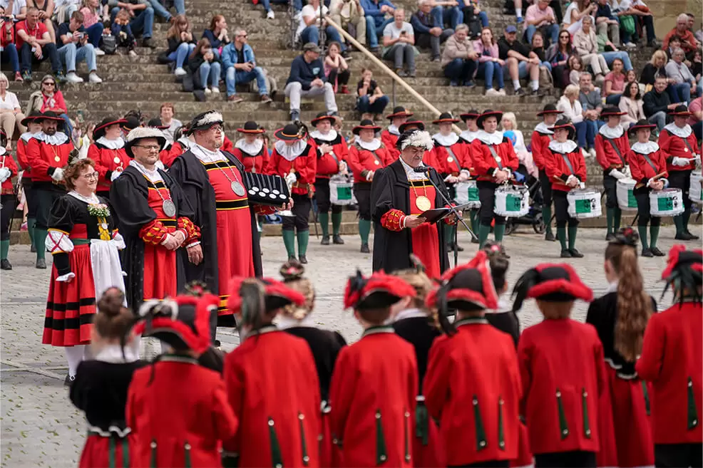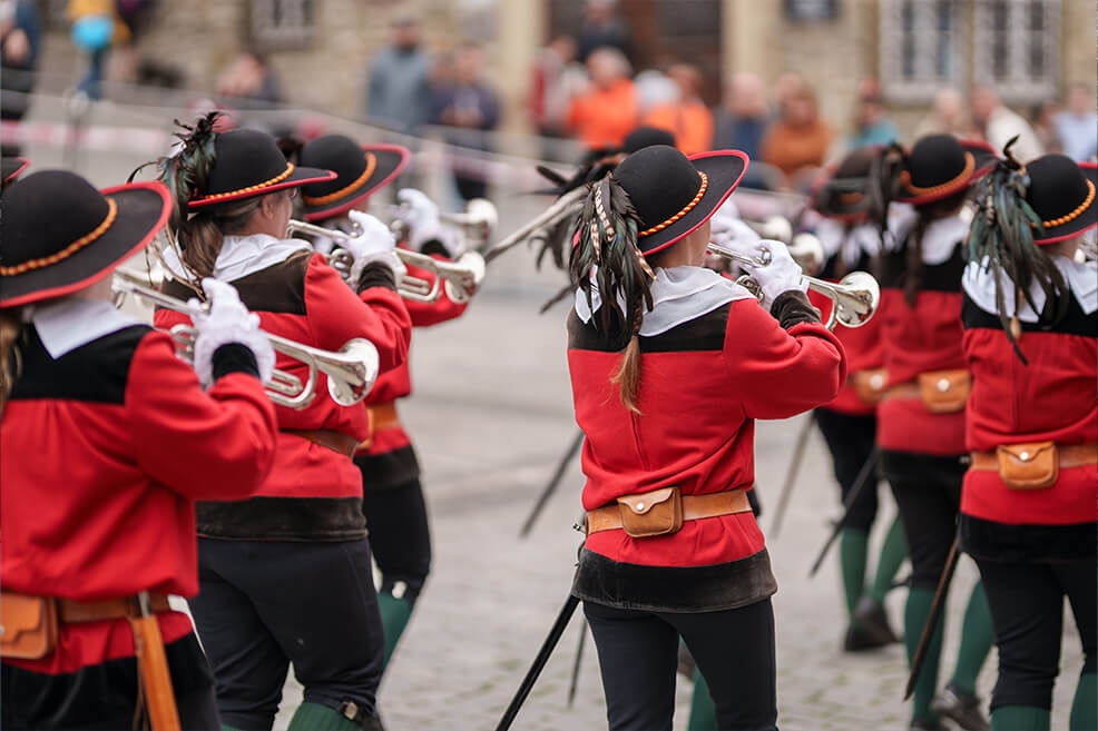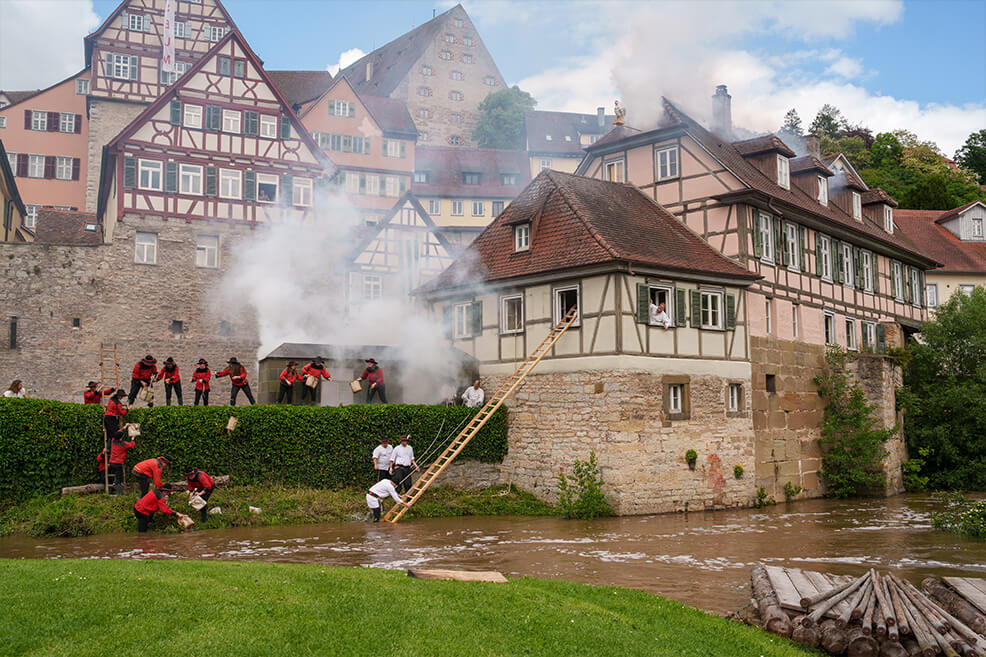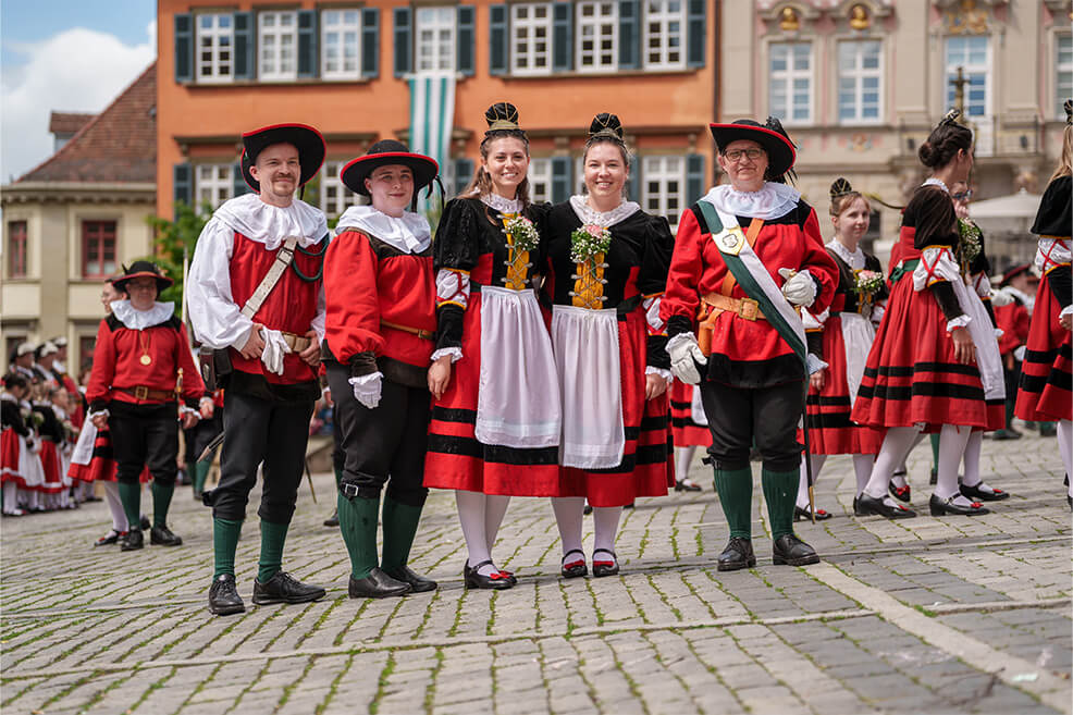 Die Zusammengehörigkeit der Sieder ist spürbar. Auch für Außenstehende, die beim Anblick des Kuchen- und Bunnenfests 2024 begeistert verfolgten, wie der Erste Hofbursche Stefan Ebert sich mit einer kleinen Tänzerin über den Marktplatz dreht. Früher sotten die Haller Sieder Salz auf dem Haalplatz, fungierten als Feuerwehr und dienten in der alten Reichsstadt als Bürgerwache. Heute überliefern sie uns mehr als ihren Brauchtum. Sie schenken Hall die Gemeinschaft ihrer eingeschworenen Truppe, ihrer Familie.
